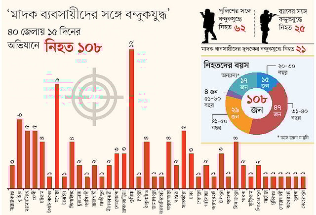 দেশব্যাপী এই মাদকবিরোধী অভিযানের শুরু ১৪ মে। আইনশৃঙ্খলা রক্ষাকারী বাহিনী বলছে, গতকাল পর্যন্ত অভিযান ও ‘বন্দুকযুদ্ধে’ ১০৮ জন নিহত হয়েছেন। বন্দুকযুদ্ধের পাশাপাশি ব্লক রেইড করছে র্যাব ও পুলিশ। তবে এই অভিযান শুরুর আগে স্বরাষ্ট্রমন্ত্রী আসাদুজ্জামান খান ঘোষণা করেছিলেন, সব বাহিনী থেকে পাওয়া মাদক ব্যবসায়ীদের তালিকা ধরে অভিযান চালানো হবে। সেই অনুযায়ী বাহিনীগুলো দেশব্যাপী মাদক ব্যবসায়ীদের তালিকা তৈরি করে। এরপর তালিকা সমন্বয়েরও উদ্যোগ নেওয়া হয়। কিন্তু সেই তালিকা সমন্বয় শেষ হওয়ার আগেই বিভিন্ন বাহিনী অভিযান শুরু করে। দেখা যায়, র্যাব, পুলিশ, বর্ডার গার্ড বাংলাদেশ (বিজিবি) নিজ নিজ পরিকল্পনামতো অভিযান চালাচ্ছে। একপর্যায়ে অভিযোগ ওঠে, এক বাহিনীর সঙ্গে আরেক বাহিনীর কোনো সমন্বয় নেই। এমনও হয়েছে, এক মাদক ব্যবসায়ীর বিরুদ্ধে অভিযান চালাতে পুলিশ ও র্যাব একসঙ্গে প্রস্তুতি নিয়েছে। পরে জানতে পেরে এক বাহিনী অভিযানে যাওয়া বাদ দিয়েছে।