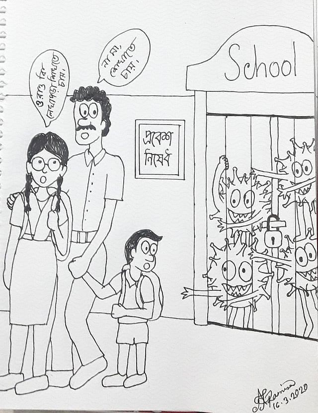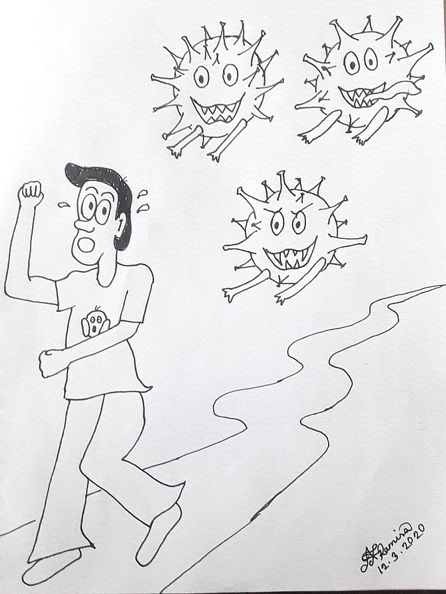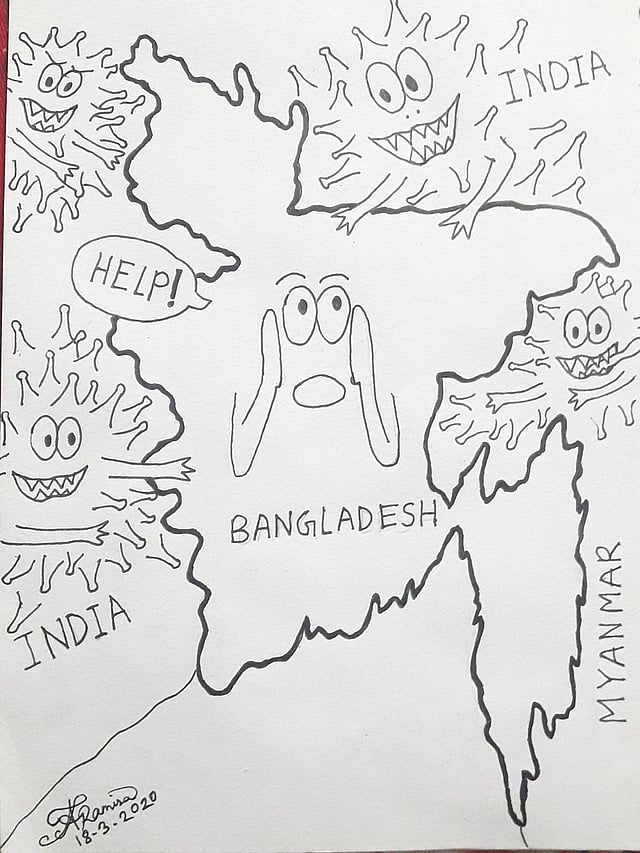 এই নতুন করোনাভাইরাস নিয়েই বেশ কিছু ছবি এঁকেছে মেহেরপুরের তাসনিম আলম রামিসা। তার বয়স ১৫ বছর। সে একজন বিশেষ চাহিদাসম্পন্ন শিশু। মেহেরপুরের জিনিয়াস ল্যাব স্কুল অ্যান্ড কলেজ থেকে এবার এসএসসি পরীক্ষা দিয়েছে সে। নতুন করোনাভাইরাস নিয়ে বেশ কিছু ছবি এঁকেছে সে। ছবিগুলো প্রথম আলোতে পাঠিয়েছে রামিসা।