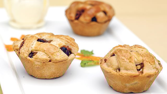 একটি বাটিতে আপেল, চিনি ও ময়দা ভালো করে মেশান। ভালো করে মেশাতে হবে, যাতে ময়দা দলা পাকিয়ে না যায়। এরপর এতে লবণ, জায়ফল গুঁড়া, দারুচিনি গুঁড়া ও লেবুর রস দিন। পাই ক্রাস্ট বের করে ছোট ছোট পাই ডিশে ভালো করে ছড়িয়ে লাগান। ডিশের বাইরে থেকে বেরিয়ে থাকা অতিরিক্ত অংশ কেটে বের করে দিন। এবার এর মধ্যে পুরটা উঁচু করে ভর্তি করুন। এবার পাই ক্রাস্টের বাকি অংশটা ফিতার মতো করে কেটে পুরের ওপর দিয়ে দিন। ধারগুলো ভালো করে চেপে চেপে সিল করে দিন। ফেটানো ডিম ব্রাশ করে দিন। ৪২৫ ডিগ্রি ফারেনহাইটে প্রিহিট করা ওভেনে ৪০-৪৫ মিনিট বেক করুন। বেক করার ফলে আপেল নরম হয়ে যাবে এবং পাইটা সোনালি রঙের হয়ে গেলে বের করে নিন। ঠান্ডা করে পরিবেশন করুন।
