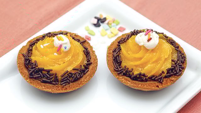টার্টের জন্য: মাখন ৬০ গ্রাম, পাউডার চিনি ৪০ গ্রাম, ডিমের কুসুম ১টি, ভ্যানিলা এসেন্স কয়েক ফোঁটা, কেক ময়দা বা ময়দা ১৩০ গ্রাম।