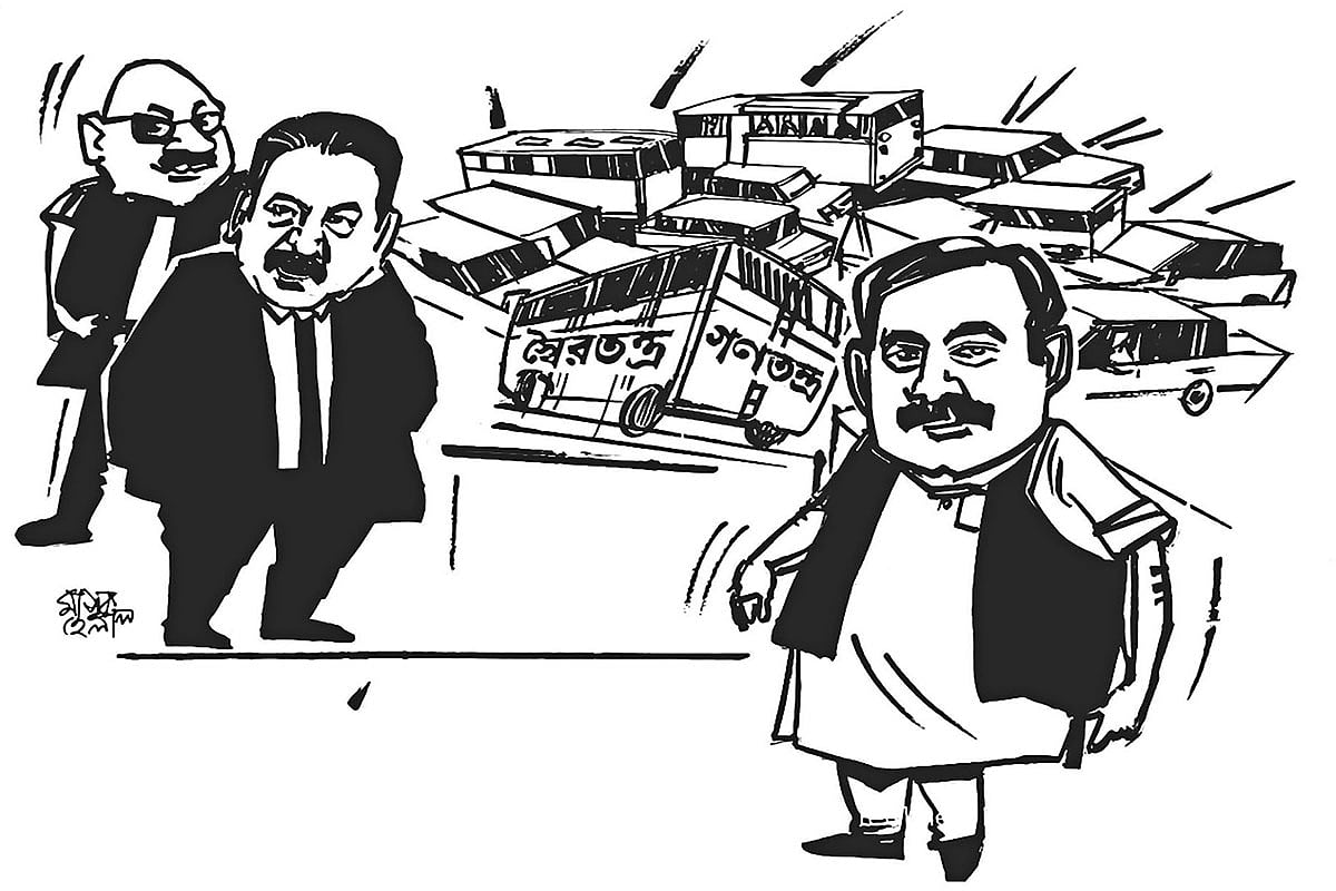 বাংলাদেশের মানুষ নব্বইয়ের গণ-অভ্যুত্থানের মাধ্যমে যে গণতন্ত্র প্রতিষ্ঠার স্বপ্ন দেখেছিল, ৩২ বছর পরও তা অপূর্ণ থেকে গেছে। আমাদের রাষ্ট্র, রাজনীতি ও রাজনৈতিক দলে স্বৈরতন্ত্রের ভূত চেপে বসেছে, যা থেকে কবে দেশ মুক্ত হবে কিংবা আদৌ হবে কি না, তা কেউ জানে না। সেই সময় যাঁরা স্বৈরতন্ত্রকে হঠাতে এবং গণতন্ত্র প্রতিষ্ঠা করতে এককাট্টা ছিলেন, তাঁরা এখন ছত্রভঙ্গ। সেই সময় তিন জোট (আওয়ামী লীগ নেতৃত্বাধীন আট দল, বিএনপি নেতৃত্বাধীন সাত দল ও বামপন্থী পাঁচ দল) গণতন্ত্র বিনির্মাণ ও মেরামতের যে রূপরেখা দিয়েছিল, একানব্বইয়ের নির্বাচনের সময়ই ক্ষমতাপ্রত্যাশী দল দুটি তা ভন্ডুল করে দিয়েছিল। কেউ স্বৈরাচার, কেউ রাজাকারের সঙ্গে হাত মিলিয়ে নিজেদের স্বার্থ উদ্ধার করেছে। গণতন্ত্র থেকে গেছে অধরা।