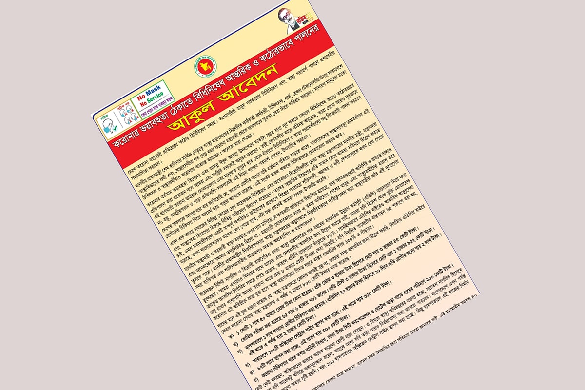 অবশ্য নিজেদের কথা তুলে ধরতে স্বাস্থ্য অধিদপ্তর, স্বাস্থ্য ও পরিবারকল্যাণ মন্ত্রণালয় করোনার ভয়াবহতা ঠেকাতে বিধিনিষেধ আন্তরিক ও কঠোরভাবে পালনের ‘আকুল আবেদন’ নামের বিজ্ঞাপন দিয়েছে। এতে বলা হয়েছে, করোনার বর্তমান পরিস্থিতি ভয়াবহ। সামনে ঈদুল আজহা। দেশবাসী যেন করোনাভাইরাস মোকাবিলা ও মৃত্যু ঠেকাতে বিধিনিষেধ ও স্বাস্থ্য পরামর্শ নিজেরা মেনে চলেন। পাশাপাশি আত্মীয়স্বজন ও পাড়া–প্রতিবেশী সবাইকে এসব নিয়ম পালনে উৎসাহিত করেন। করোনা রোগীর সংখ্যা যদি বর্তমান গতিতে বাড়তে থাকে, তাহলে বাংলাদেশের স্বাস্থ্যব্যবস্থা ক্রমবর্ধমান রোগীর চিকিৎসা দিতে অসমর্থ হয়ে পড়বে, এমন আশঙ্কার কথাও বলা হয়েছে। এমন পরামর্শ ও সতর্কতার জন্য মন্ত্রণালয়কে সাধুবাদ জানাতে হয়। কিন্তু বিজ্ঞাপনের বেশির ভাগ অংশে দেওয়া তথ্য ও বক্তব্যে রয়েছে অসংগতি।