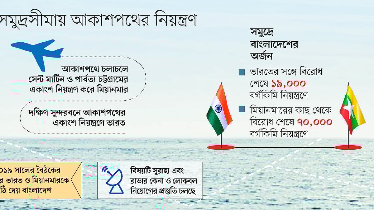সংশ্লিষ্ট সূত্রগুলো বলছে, সমুদ্রসীমা নির্ধারণের পরও আকাশসীমার একটা অংশ অন্য দেশের নিয়ন্ত্রণে থাকায় বাংলাদেশ একদিকে আর্থিকভাবে ক্ষতিগ্রস্ত হচ্ছে, অন্যদিকে দেশের সীমানার মধ্যে আকাশপথে চলাচল–সম্পর্কিত তথ্য অন্য দেশের কাছে চলে যাচ্ছে।