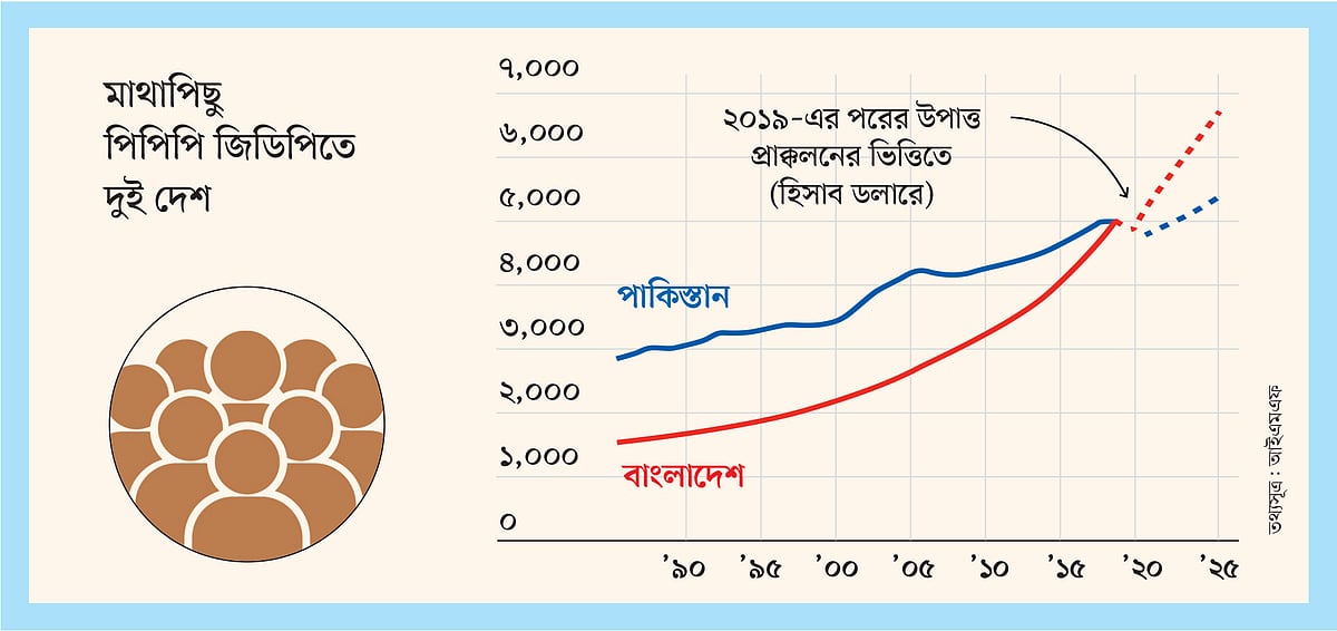 বাংলাদেশ ও পাকিস্তানের মধ্যে এই পরিসংখ্যানগত নিরীক্ষা মোটেই অপ্রাসঙ্গিক নয়। ১৯৭১ সালে বাংলাদেশের স্বাধীনতাযুদ্ধের এক বাহ্য কারণ ছিল পাকিস্তানের দুই অংশের মধ্যে অর্থনৈতিক বৈষম্য। পরিস্থিতি কতটা বদলে গেছে তার এক সহজ হিসাব দিয়েছে ভারতের গণমাধ্যম টাইমস অব ইন্ডিয়া। বিশ্বব্যাংকের উপাত্ত ব্যবহার করে পত্রিকাটি বলছে, উন্নয়ন সূচকের প্রতিটি ক্ষেত্রেই বাংলাদেশ তার সাবেক শাসক পাকিস্তানকে ছাড়িয়ে গেছে। ১৯৭১ সালে পাকিস্তানের মোট অর্থনৈতিক সম্পদের পরিমাণ ছিল ১১ বিলিয়ন ডলার; একই সময় বাংলাদেশের মোট সম্পদের পরিমাণ ছিল ৯ বিলিয়ন ডলার। এখন সেই হিসাবটা দাঁড়িয়েছে এই রকম: বাংলাদেশ (৩২৪ বিলিয়ন ডলার), পাকিস্তান (২৬৪ বিলিয়ন)। অর্থাৎ, পাকিস্তানের তুলনায় বাংলাদেশের অতিরিক্ত প্রবৃদ্ধি ঘটেছে ২৩ শতাংশ।