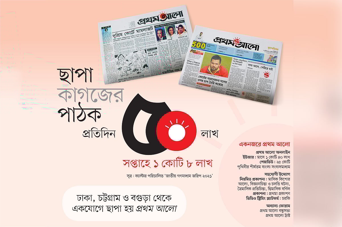 লন্ডনভিত্তিক জরিপ পরিচালনাকারী প্রতিষ্ঠান ক্যান্টার ২০২১ সালে বাংলাদেশে একটি জাতীয় গণমাধ্যম জরিপ করেছে। সে জরিপে জানা গেছে, প্রতিদিন ৫০ লাখ পাঠক প্রথম আলোর ছাপা পত্রিকা পড়েন। দৈনিক পত্রিকাগুলোর মধ্যে প্রথম আলোর পাঠক সংখ্যা সবচেয়ে বেশি। করোনার অতিমারির সময়েও এই পাঠকসংখ্যা প্রথম আলোকে একটি অনন্য উচ্চতায় স্থাপন করেছে। তারই ভিত্তিতে আজকের এই বিশেষ আয়োজন।