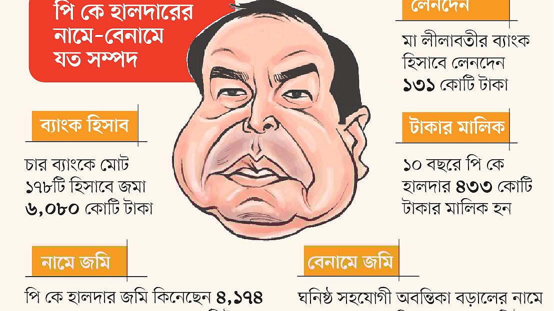 পি কে হালদারের নামে–বেনামে করা কাগুজে কোম্পানির ১৭৮টি ব্যাংক হিসাবে ১২ বছরে প্রায় ৬ হাজার ৮০ কোটি টাকা জমা হয়।