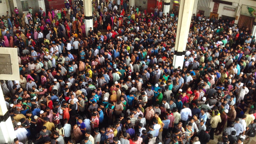আজ সকালে চট্টগ্রাম স্টেশনে দেখা যায়, স্টেশনের প্রতিটি কাউন্টারে মানুষের দীর্ঘ সারি। নারীদের জন্য কাউন্টারেও ভিড় ছিল। আগের দিন রাতে অনেকেই পত্রিকা, প্যাকেটের কাগজ নিয়ে স্টেশনে বসেছিলেন। সকালে তা পরিষ্কার করছিলেন পরিচ্ছন্নতাকর্মীরা।
