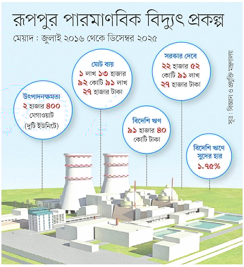 রূপপুর পারমাণবিক বিদ্যুৎকেন্দ্র দেশের ইতিহাসে সবচেয়ে বড় প্রকল্প। দেশে প্রায় সব বড় প্রকল্প মেয়াদ ও ব্যয় বাড়ানোর একটা প্রশ্নবিদ্ধ রীতিতে চলছে। কিন্তু এখন পর্যন্ত রূপপুর প্রকল্পের ব্যয় বা মেয়াদ—কোনোটাই বাড়াতে হয়নি। যদিও রূপপুর প্রকল্প বাস্তবায়নকারী সংস্থার দায়িত্বশীল একাধিক কর্মকর্তা প্রথম আলোকে বলেছেন, বিদ্যুৎ সরবরাহ ও সঞ্চালন লাইনের কাজ সময়ের মধ্যে শেষ না হলে এই প্রকল্পও সময় বৃদ্ধির চক্রে পড়বে। আগামী বাজেটের আগেই প্রকল্পের মেয়াদ বাড়ানোর আলোচনা সামনে চলে আসতে পারে।