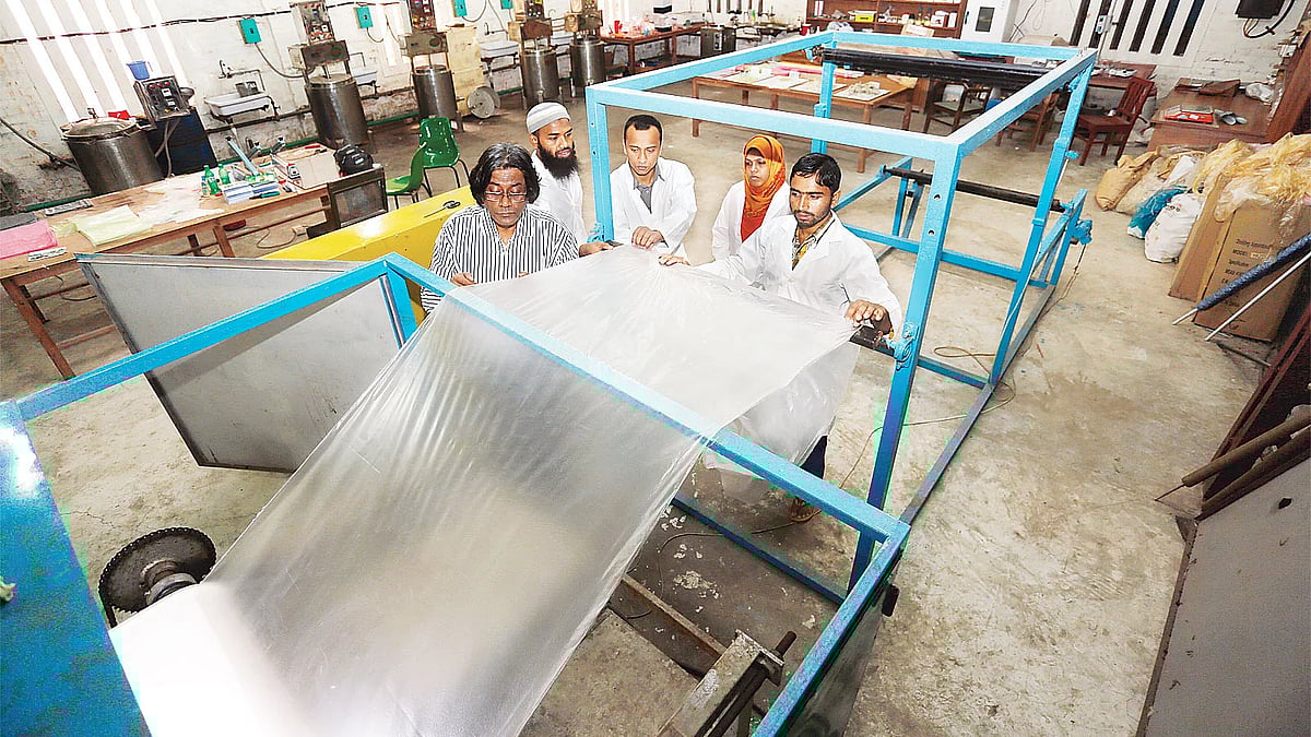 মোবারক আহমেদ খান বলেন, পাইলট প্রকল্পে টার্গেট ছিল এক লাখ ব্যাগ উৎপাদন করা। তা সম্ভব হয়নি স্বয়ংক্রিয় পদ্ধতিতে ব্যাগ সিলিং মেশিনের অভাবে। এখন ২৪ ঘণ্টা যন্ত্র চালিয়ে ৯০ হাজার ব্যাগ উৎপাদন করা যায়। তিনি বলেন, স্থানীয় উদ্যোক্তারা যদি বিনিয়োগ করেন, তাহলে এটা আরও দ্রুত বাণিজ্যিক আকারে করা সম্ভব হবে। এই ব্যাগ বাণিজ্যিকভাবে বাজারে আনার জন্য যা যা করা লাগে, সরকারি অর্থায়ন থেকে শুরু করে বেসরকারি উদ্যোক্তা—কোনো কিছুতেই বাধা নেই। তিনি বলেন, দৈনিক ১০ টন উৎপাদন করতে হলে প্রায় ৩০০ কোটি টাকা বিনিয়োগ লাগবে।