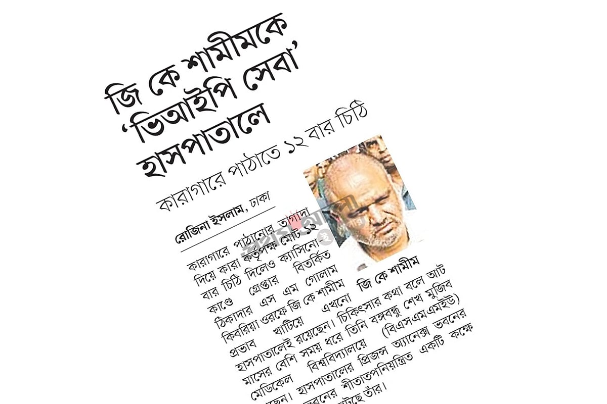 এর আগে কারা কর্তৃপক্ষ মোট ১২ বার চিঠি দিলেও বিতর্কিত এই ঠিকাদার প্রভাব খাটিয়ে হাসপাতালেই ছিলেন। এ নিয়ে আজ প্রথম আলোতে ‘জি কে শামীমকে “ভিআইপি সেবা” হাসপাতালে’ শিরোনামে প্রতিবেদন প্রকাশের পর তাঁকে আবার কারাগারে ফেরত পাঠানো হলো।