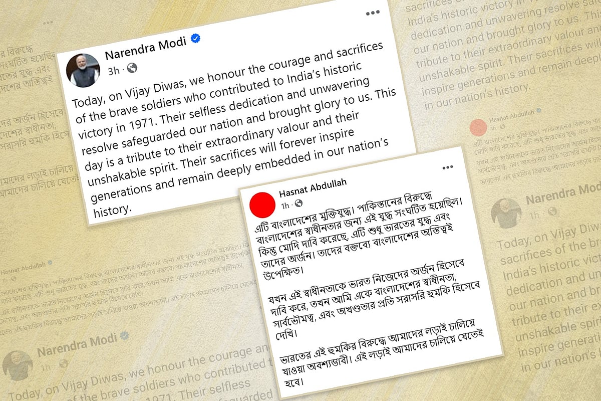 মোদির এই পোস্টের স্ক্রিনশট নিজের ভেরিফায়েড ফেসবুকে যুক্ত করে হাসনাত আবদুল্লাহ লিখেছেন, ‘এটি বাংলাদেশের মুক্তিযুদ্ধ। পাকিস্তানের বিরুদ্ধে বাংলাদেশের স্বাধীনতার জন্য এই যুদ্ধ সংঘটিত হয়েছিল। কিন্তু মোদি দাবি করেছে, এটি শুধু ভারতের যুদ্ধ এবং তাদের অর্জন। তাদের বক্তব্যে বাংলাদেশের অস্তিত্বই উপেক্ষিত।’