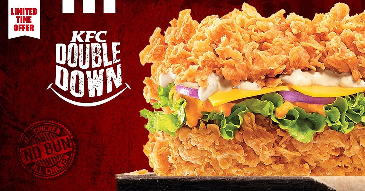 কেএফসি ডাবল ডাউন এখন সারা দেশে আপনি পাবেন মাত্র ৩৯৯ টাকায়। আইটেমটি পাওয়া যাচ্ছে ডাইন-ইন, টেকঅ্যাওয়ে, অনলাইন অর্ডার, কল ফল ডেলিভারি ও কেএফসি অ্যাপে।