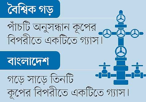 এরপর গত ১৩ বছরে আরও ১৯টি অনুসন্ধান কূপ খনন করে পাঁচটি গ্যাসক্ষেত্র পাওয়া গেছে। তার মানে গড়ে সাড়ে তিনটি কূপ খনন করে একটি গ্যাসক্ষেত্র পাওয়া গেছে। জ্বালানি বিশেষজ্ঞরা বলছেন, বৈশ্বিকভাবে প্রতি পাঁচটি অনুসন্ধান কূপের বিপরীতে একটিতে গ্যাস পাওয়া যায়। বাংলাদেশে এর চেয়ে ভালো ফল পাওয়ার পরও গ্যাস অনুসন্ধানে জোর দেওয়া হয়নি।