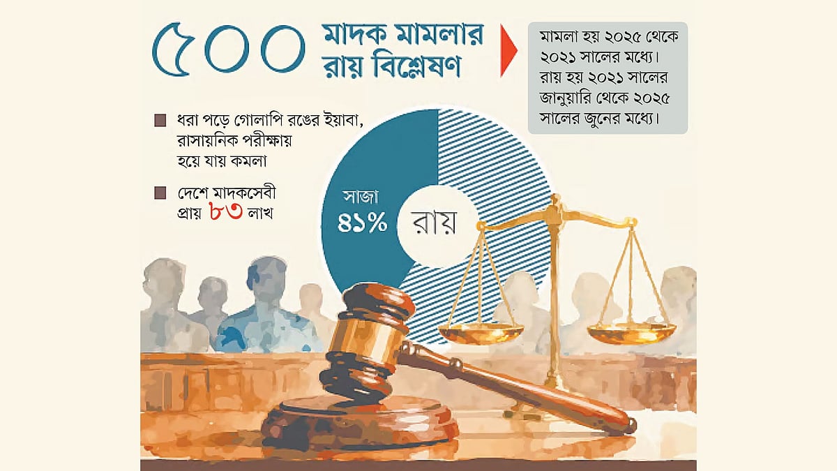 মাদকসহ হাতেনাতে ধরা পড়লেও বেশির ভাগ ক্ষেত্রে আসামিরা বিচারিক প্রক্রিয়ায় খালাস পেয়ে যাচ্ছেন। প্রথম আলোর অনুসন্ধানে দেখা গেছে, দেশে মাদকের যত মামলা হয়, তার ৫৯ শতাংশই শেষ পর্যন্ত আদালতে প্রমাণ করা যায় না। অন্যভাবে বলা যায়, মাদকের ৫৯ শতাংশ মামলায় আসামিদের সাজা হয় না।