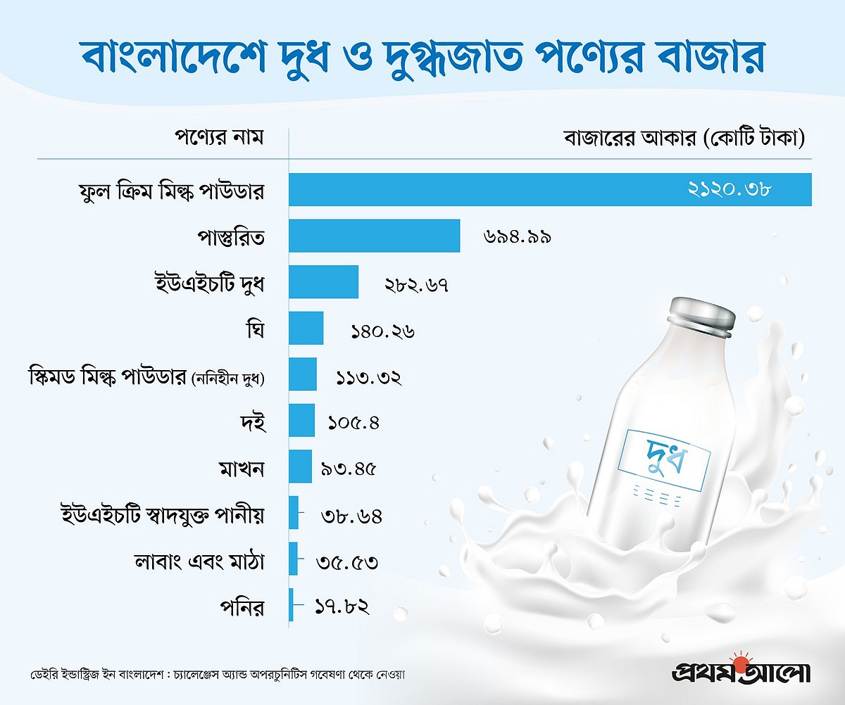 দেশে তরল দুধের পাশাপাশি বাড়ছে দুগ্ধজাত পণ্যের চাহিদা। বাংলাদেশে ডেইরি ফার্মার্স অ্যাসোসিয়েশনের সাধারণ সম্পাদক শাহ ইমরান বলছিলেন, ‘আমরা বাসাবাড়িতে জরিপ চালিয়ে দেখেছি, বয়স্কদের মধ্যে দুধ পানের অভ্যাস আছে। অপেক্ষাকৃত কমবয়সীদের মধ্যে দুগ্ধজাত নানা পণ্য যেমন মিষ্টি, দই, লাবাং খাওয়ার প্রবণতা বেশি।