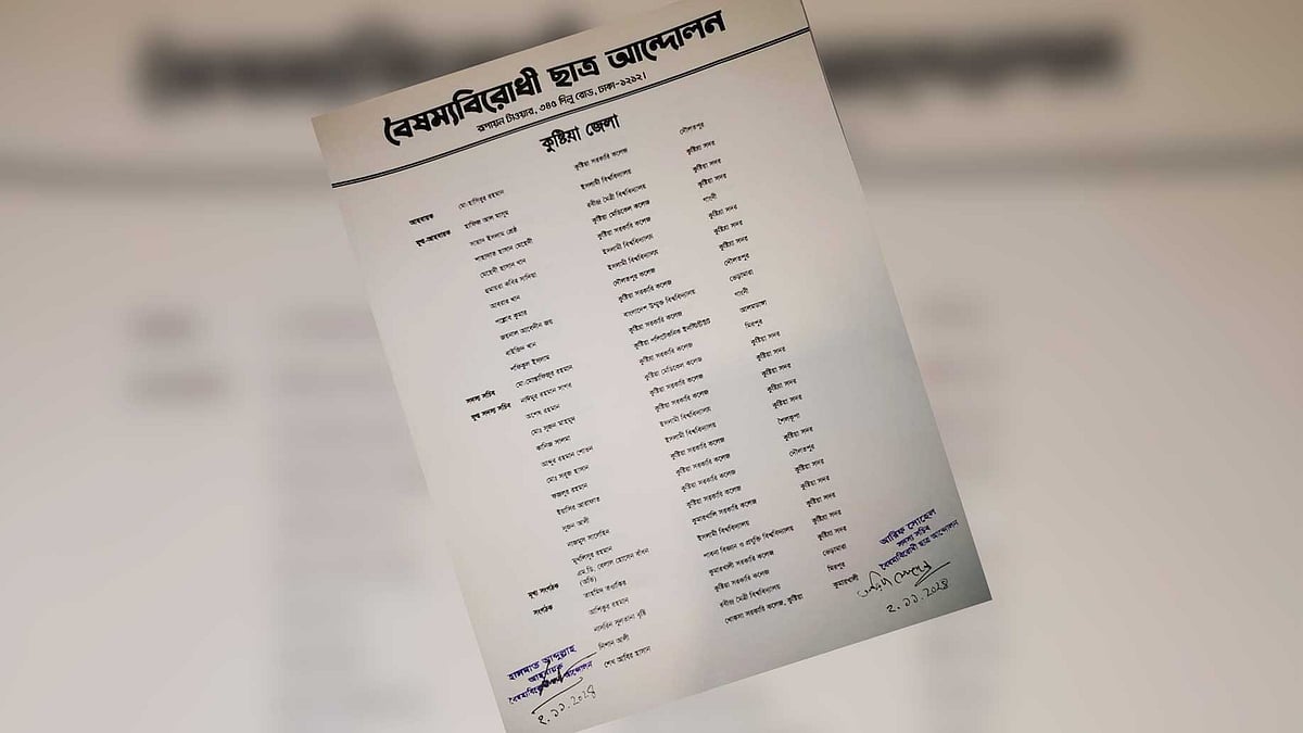 বৈষম্যবিরোধী ছাত্র আন্দোলন জেলা পর্যায়ে কমিটি গঠন শুরু করেছে। কুষ্টিয়া জেলায় ১১১ সদস্যের আহ্বায়ক কমিটি গঠনের মধ্য দিয়ে এই কার্যক্রম শুরু হলো। পর্যায়ক্রমে অন্য জেলাগুলোতেও কমিটি গঠন করবে বৈষম্যবিরোধী ছাত্র আন্দোলন।