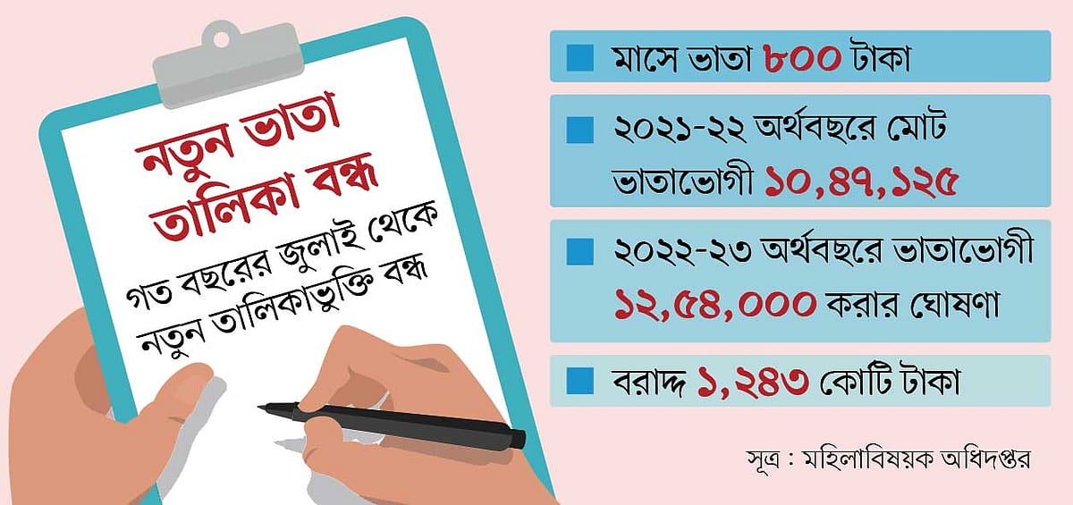 কর্মসূচি পরিচালক (মা ও শিশু সহায়তা কর্মসূচি) রুবিনা গনি প্রথম আলোকে বলেন, গত বছরের জুলাই থেকে সারা দেশে নতুন তালিকা বন্ধ থাকার বিষয়টি সঠিক নয়। ২০১৯–২০ থেকে গত তিন অর্থবছরে বরাদ্দ বাড়েনি।