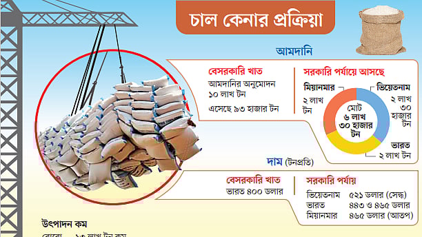চালের সম্ভাব্য সংকট মোকাবিলায় সরকার গত ২০ জুলাই ৩৮০টি বেসরকারি প্রতিষ্ঠানকে প্রায় ১০ লাখ টন চাল আমদানির অনুমতি দেয়। গত বৃহস্পতিবার পর্যন্ত বেসরকারি খাতে মাত্র ৯৩ হাজার টন চাল আমদানি হয়েছে।