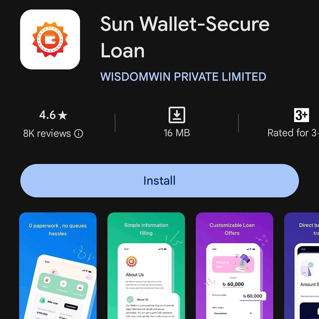 যেমন ‘সান ওয়ালেট সিকিউর লোন’ নামের একটি অ্যাপ ব্যক্তিপর্যায়ে ৬ থেকে ২৪ শতাংশ সুদে ৫ হাজার থেকে ২ লাখ টাকা পর্যন্ত ঋণের প্রস্তাব দিচ্ছে। অ্যাপটি চলতি বছরের এপ্রিলে গুগলের প্লে স্টোরে আসে। এখন পর্যন্ত এক লাখের বেশিবার ডাউনলোড করা হয়েছে।