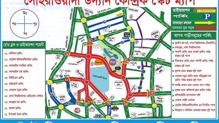 তাই সোহরাওয়ার্দী উদ্যানের আশপাশের এলাকায় চলাচলের ক্ষেত্রে নগরবাসীকে ভিন্ন রাস্তা ব্যবহার করার অনুরোধ জানিয়েছে পুলিশ।