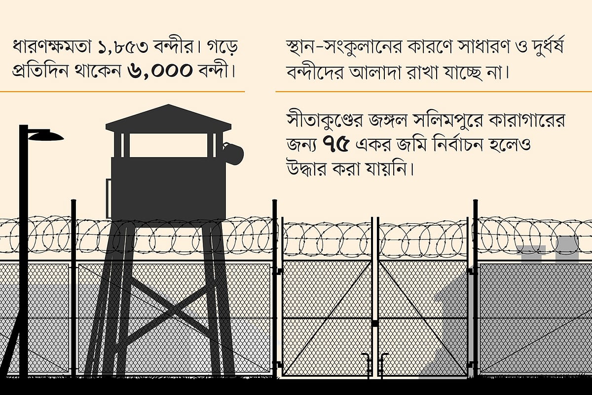 কারা সূত্র জানায়, সীতাকুণ্ড উপজেলার জঙ্গল সলিমপুরে নতুন কারাগারের জন্য জমি নির্বাচন করা হলেও দখলে থাকায় সেটি অধিগ্রহণ করা যায়নি। এখন নতুন জমি খোঁজা হচ্ছে।