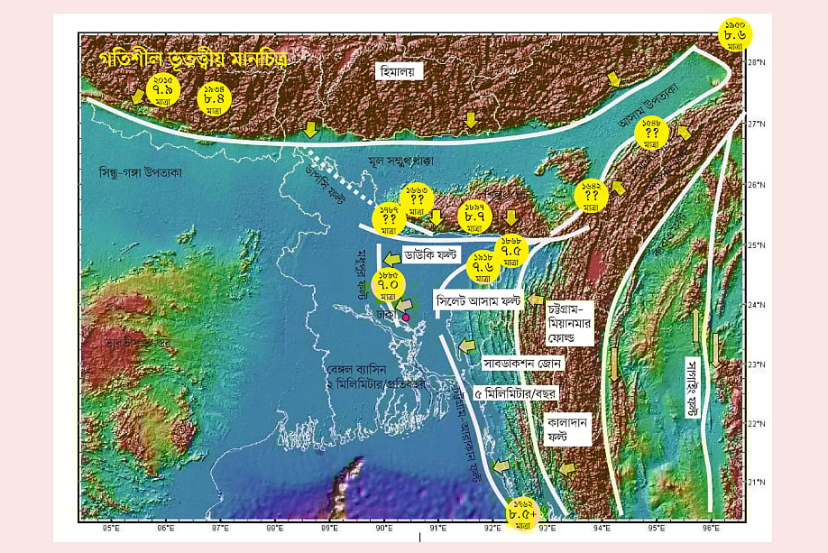 সব এলাকাই ঢাকা থেকে কমপক্ষে ১০০ কিলোমিটার দূরে। কিন্তু সেখানে সাত থেকে আট মাত্রার ভূমিকম্প হলে তা ঢাকায় বড় ধরনের বিপর্যয় তৈরি করতে পারে। যুক্তরাষ্ট্রের কলম্বিয়া বিশ্ববিদ্যালয় ও ঢাকা বিশ্ববিদ্যালয়ের কয়েক জন শিক্ষকের গবেষণায় এসব তথ্য উঠে এসেছে।