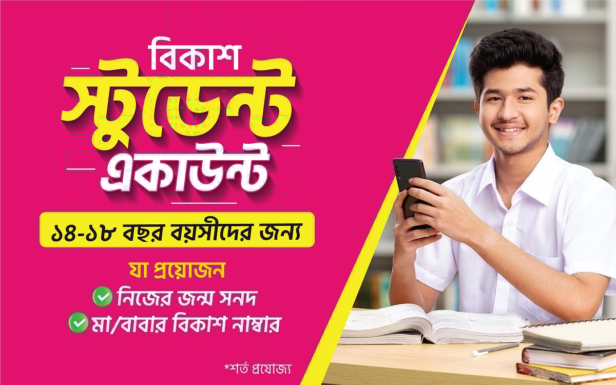 বিকাশ অ্যাপ দিয়ে স্টুডেন্ট অ্যাকাউন্ট খুলতে শুরুতে অ্যাপ ডাউনলোড করে লগইন বা রেজিস্টারে ট্যাপ করতে হবে। নিজের মুঠোফোন নম্বর দিয়ে ‘জন্মসনদ’ অপশনটি সিলেক্ট করতে হবে। এখানে ডিজিটাল জন্মসনদের ছবি তুলে আরও কিছু ব্যক্তিগত তথ্য দিয়ে পরবর্তী ধাপে যেতে হবে। এরপর নমিনি হিসেবে মা অথবা বাবাকে বেছে নিয়ে তাঁদের সচল বিকাশ অ্যাকাউন্ট নম্বর দিয়ে নিশ্চিত করতে হবে। ওই নম্বরে একটি ভেরিফিকেশন কোড যাবে। সঙ্গে সঙ্গেই অথবা পরবর্তী ৪৮ ঘণ্টার মধ্যেই ভেরিফিকেশন কোডটি ব্যবহার করে রেজিস্ট্রেশন সম্পন্ন করতে হবে। নির্দিষ্ট ধাপ অনুসরণ করে সফলভাবে এই স্টুডেন্ট অ্যাকাউন্ট খুললেই বিকাশের পক্ষ থেকে নতুন অ্যাকাউন্টে ২৫ টাকার বোনাস পেয়ে যাবেন শিক্ষার্থীরা। তা ছাড়া কিছু নির্দিষ্ট লেনদেন করার পর শর্ত সাপেক্ষে আরও ১০৫ টাকা বোনাস পাওয়ার সুযোগ থাকছে।