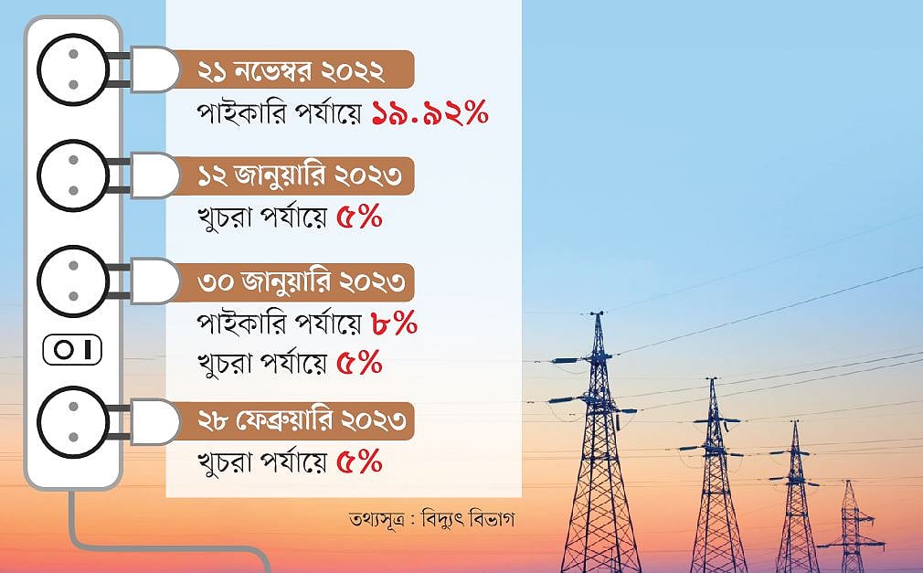 ভোক্তা পর্যায়ে মাসে মাসে বাড়ছে বিদ্যুতের দাম। এবার বাড়ল আরও ৫ শতাংশ। এতে তিন মাস ধরে প্রতি মাসের বিদ্যুৎ বিলে যুক্ত হচ্ছে নতুন খরচ। শুধু তা–ই নয়, বাজার চড়ে থাকা নিত্যপণ্যের দামও বাড়ছে। এখন বাড়বে আরও। সব মিলিয়ে বাড়তি খরচের চাপ সামলাতে আরও হিমশিম খাবেন ভোক্তারা।