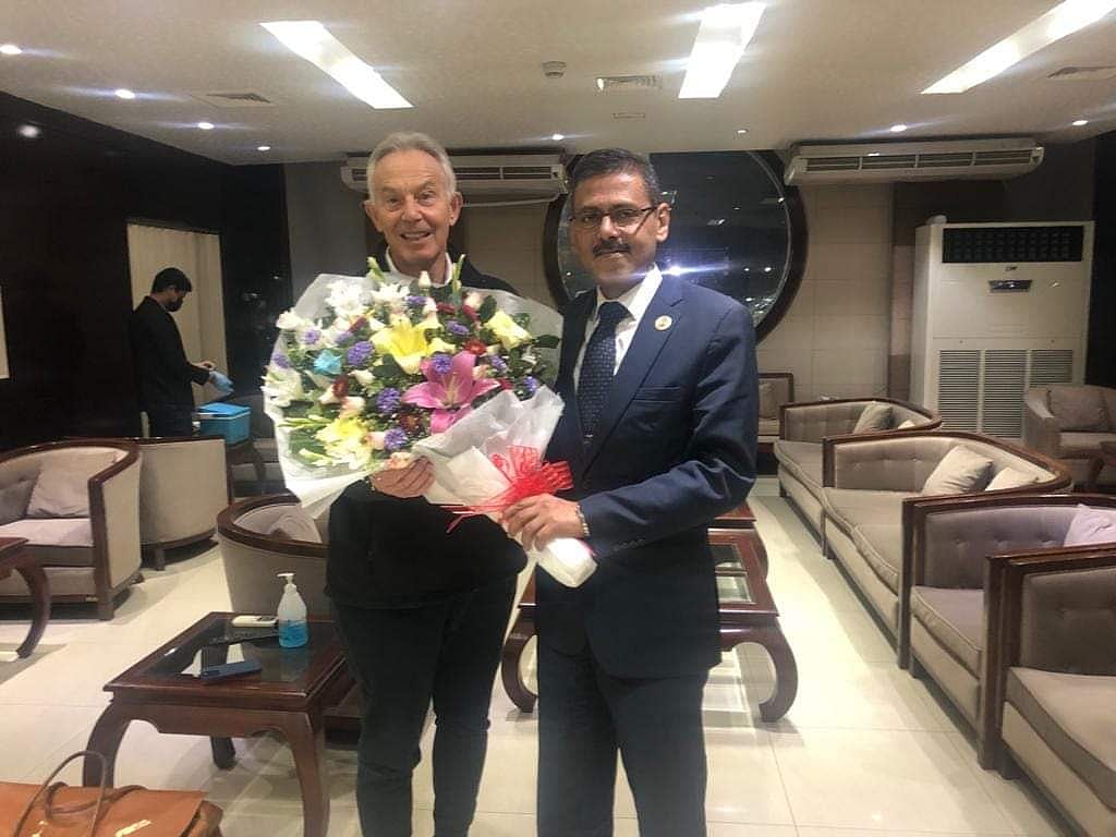 ইনস্টিটিউট ফর গ্লোবাল চেঞ্জের নির্বাহী চেয়ারম্যান হিসেবে টনি ব্লেয়ার ঢাকা এসেছেন। হজরত শাহজালাল আন্তর্জাতিক বিমানবন্দরে তাঁকে স্বাগত জানান পররাষ্ট্র মন্ত্রণালয়ের সচিব (পশ্চিম) সাব্বির আহমেদ চৌধুরী।