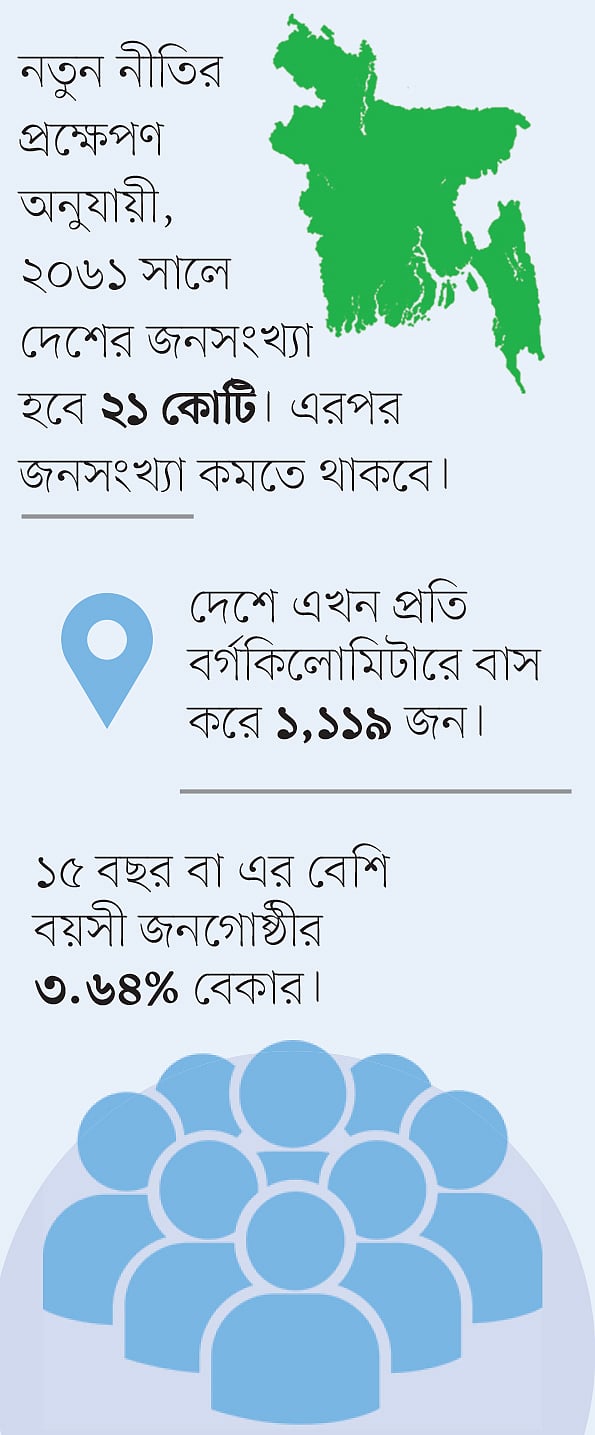 নতুন জনসংখ্যা নীতিতে জনসংখ্যা ব্যবস্থাপনার ওপর জোর দেওয়া হয়েছে। এই নীতি সংখ্যা বা পরিসংখ্যানের চেয়ে মানুষের অধিকারকে গুরুত্ব দিয়েছে। নতুন নীতিতে বলা হয়েছে, জনসংখ্যার লভ্যাংশের সুযোগ বাংলাদেশ আর ৩৬ বছর কাজে লাগাতে পারবে।