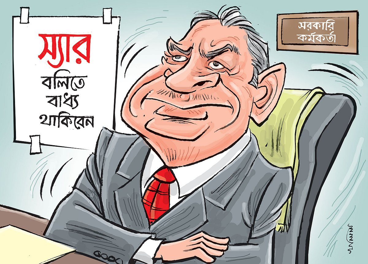 ব্রিটিশরা চলে গেছে, কিন্তু তাদের কুঁচকানো ভুরুটা রয়ে গেছে। কালে কালে ‘স্যারের’ শিকড়টা এমন গভীরে চলে গেছে যে এখন বড় কর্তার সব কথার উত্তর ‘স্যার’ শব্দ দিয়েই দেওয়া যায়। হ্যাঁ বাচক, না বাচক যা–ই হোক এক ‘স্যার’ দিয়ে সেরে ফেলা যায় কথোপকথন।