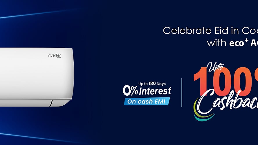 আসন্ন ঈদে ইকো+ এসির আকর্ষণীয় সব অফার ইতিমধ্যে শুরু হয়েছে। স্ক্র্যাচ কার্ডের মাধ্যমে ১০০ শতাংশ পর্যন্ত ক্যাশব্যাক, ১৮০ দিন পর্যন্ত শূন্য শতাংশ ইন্টারেস্টে নগদ কিস্তি সুবিধা ও ২০ হাজার টাকা পর্যন্ত এক্সচেঞ্জ অফার। খুব সহজেই স্বাচ্ছন্দ্যে সুলভ নগদে, কিস্তির স্বস্তিতে, ব্যাংক ইএমআই ও মোবাইল ব্যাংকিংয়ের সুবিধায় কিনে নিতে পারবেন ইকো+ এসি।