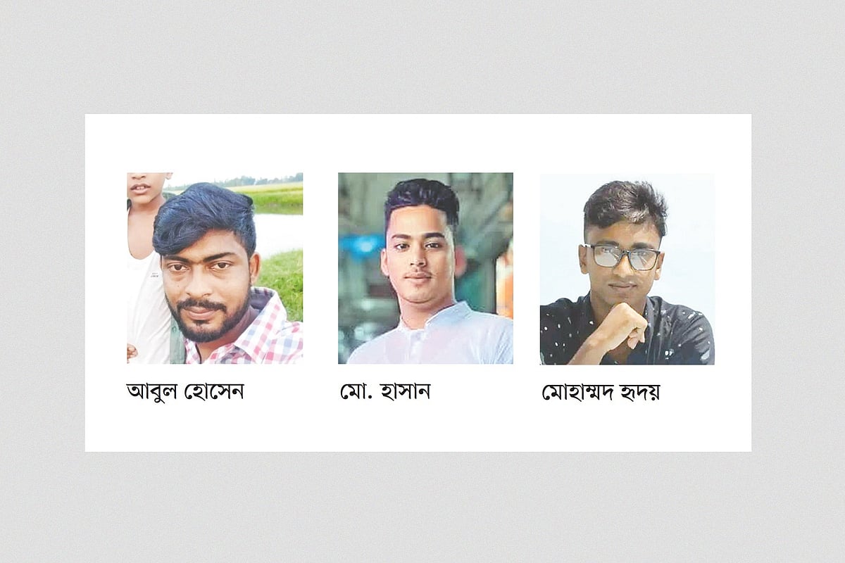 দিনমজুর আবুল হোসেন, দোকানকর্মী মো. হাসান ও অটোরিকশাচালক মোহাম্মদ হৃদয়ের লাশ এখনো পায়নি পরিবার।