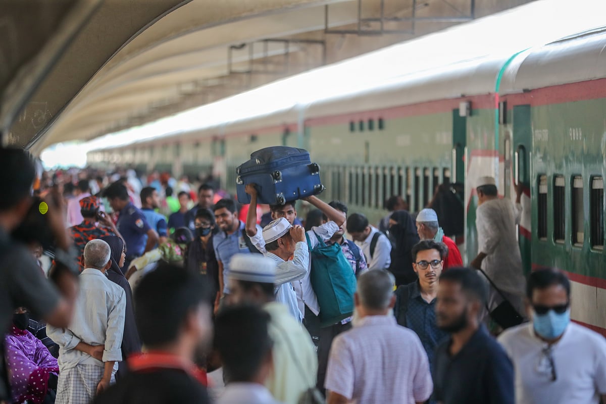 ঢাকা থেকে ঈদ যাত্রার জন্য আন্তনগর ট্রেনের কোনো টিকিট স্টেশনের কাউন্টারে বিক্রি হচ্ছে না। তবে ঈদযাত্রা শুরু হলে ট্রেন ছাড়ার আগে আগে সাধারণ আসনের ২৫ শতাংশ আসনবিহীন (স্ট্যান্ডিং) টিকিট বিক্রি করা হবে।