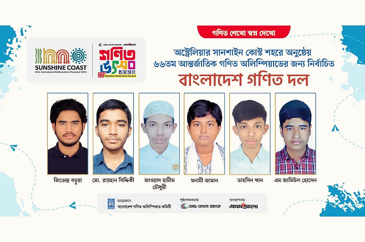 ৬৬তম আন্তর্জাতিক গণিত অলিম্পিয়াডের (আইএমও) বাংলাদেশ দল ঘোষণা করেছে বাংলাদেশ গণিত অলিম্পিয়াড কমিটি। ছয় সদস্যের এ দলের সঙ্গে থাকবেন একজন কোচ, একজন উপদলনেতা ও একজন পর্যবেক্ষক। আইএমওর ৬৬তম আসর অনুষ্ঠিত হবে অস্ট্রেলিয়ার সানশাইন কোস্ট শহরে। চলতি বছরের ১০-২০ জুলাই বসবে এ আসর।