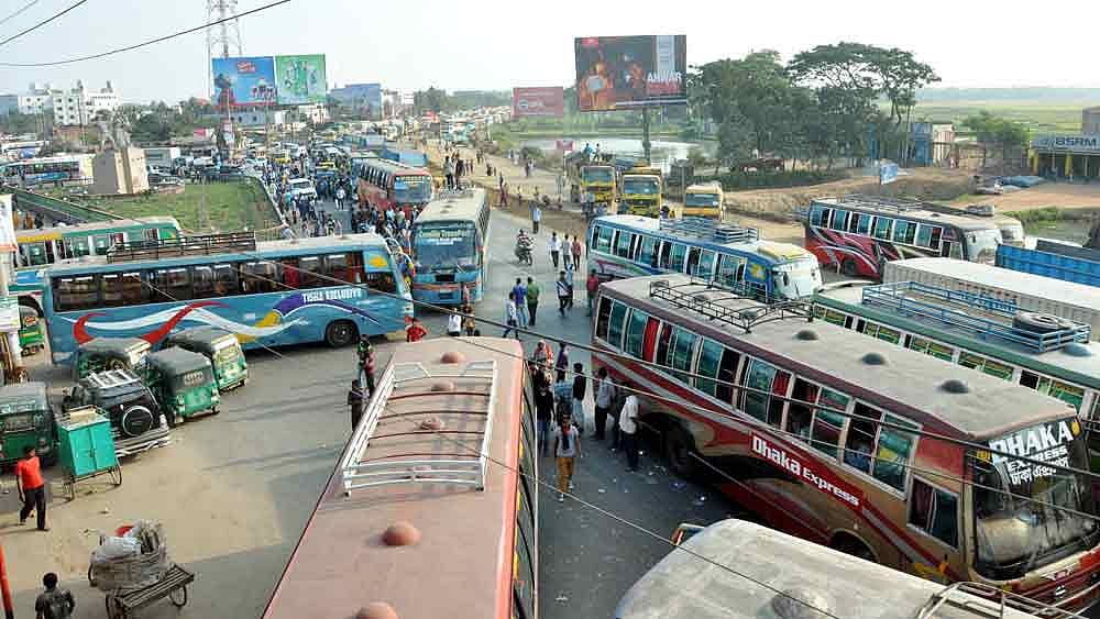 ট্রাফিক পুলিশ দেখেও ‘দেখে না’। সাধারণ মালিকদের কাছ থেকে দিনে প্রতি বাসে ৯০০ টাকা আদায়।