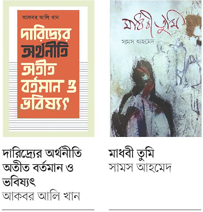এ ছাড়া মেলায় প্রথমা এনেছে আকবর আলি খানের দারিদ্র্যের অর্থনীতি: অতীত, বর্তমান ও ভবিষ্যৎ। আজ প্রথমায় আরও দুটি নতুন বই এসেছে। হাসনাত আবদুল হাইয়ের হেমিংওয়ের সঙ্গে ও মোহাম্মদ আজমের হুমায়ূন আহমেদ পাঠপদ্ধতি ও তাৎপর্য। অন্যপ্রকাশ এনেছে সামস আহমেদের কবিতার বই মাধবী তুমি।
