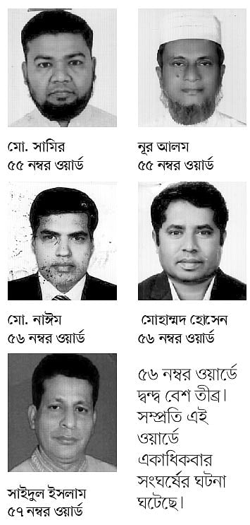 নির্বাচনের দিন যতই ঘনিয়ে আসছে, কামরাঙ্গীরচরের ওয়ার্ডগুলোতে ক্ষমতাসীন দলের সমর্থিত প্রার্থী ও বিদ্রোহী প্রার্থীর মধ্যে সংঘাত ততই দৃশ্যমান হচ্ছে। এ ছাড়া বিএনপি–সমর্থিত কাউন্সিরল প্রার্থীদের ওপর হামলার অভিযোগ রয়েছে। এ নিয়ে ওয়ার্ডের বাসিন্দাদের মধ্যে ভীতিকর পরিস্থিতির সৃষ্টি হয়েছে। বিশেষ করে কামরাঙ্গীরচরের ৫৬ নম্বর ওয়ার্ডের দ্বন্দ্ব বেশ তীব্র। সম্প্রতি এই ওয়ার্ডের দল–সমর্থিত প্রার্থী ও বিদ্রোহী প্রার্থীর সমর্থকদের মধ্যে একাধিকবার সংঘর্ষের ঘটনা ঘটেছে। এতে দুই পক্ষের বেশ কয়েকজন আহত হয়েছেন।