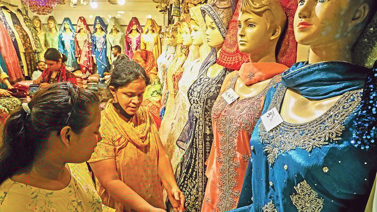 গতকাল রোববার রাজধানীর গাউছিয়া মার্কেটের জুনাইন কালেকশনে হাজির হতেই দেখা মিলল সারি সারি ম্যানিকুইনের। তাদের পরনে থাকা সব পোশাকেই কোনো না কোনো ভারতীয় চলচ্চিত্রের নাম লেখা। এমন নামকরণের কারণ জানতে চাইলে বিক্রেতা শান্ত হাসান প্রথম আলোকে বলেন, ‘এই নামে আসলে পোশাক হয় না। কাস্টমার টানার জন্য আমরাই এই সব নামে ডাকি। ঈদে বিক্রি বাড়ানোর জন্য ভাইরাল নাম রাখা হয়।’ কেবল জুনাইন কালেকশনই নয়, গাউছিয়ার অনেক দোকানেই দেখা গেল একই দৃশ্য। কিসের ভিত্তিতে পোশাকের এমন নাম বাছাই করা হয়, জানতে চাইলে বিক্রেতারা জানান, সম্প্রতি জনপ্রিয়তা পাওয়া চলচ্চিত্র বা গানের নামে পাইকারি দোকান বা তাঁরা নিজেরাই এসব নাম ঠিক করে থাকেন।
