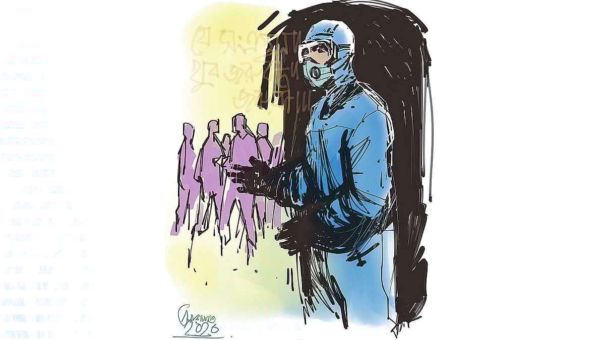 মেসেজটা পেলাম ইফতারের আগেই। মুগদা হাসপাতালে আমার পোস্টিং হয়েছে। সরকারি ডাক্তার হিসেবে শিক্ষাছুটিতে একটা নন–ক্লিনিক্যাল কোর্সে ছিলাম। লকডাউনে তেমন কাজ না থাকায় হতাশা লাগছিল। এবার আমার কঠিন পরীক্ষা, স্ত্রীকে জানানো। তান্নিকে খবরটা দিলাম। বললাম, ‘তোমার সমর্থন চাই।’ অল কোয়ায়েট ইন দ্য ওয়েস্টার্ন ফ্রন্ট! চোখের পানি মুছে কিছুক্ষণ পর সে বলল, ‘মানুষের সেবা করার সুযোগ পেয়েছ। আমি পাশে আছি।’ হাঁপ ছাড়লাম। তান্নি চিকিৎসক না হয়েও পেশাটির মহত্ত্ব বোঝে।