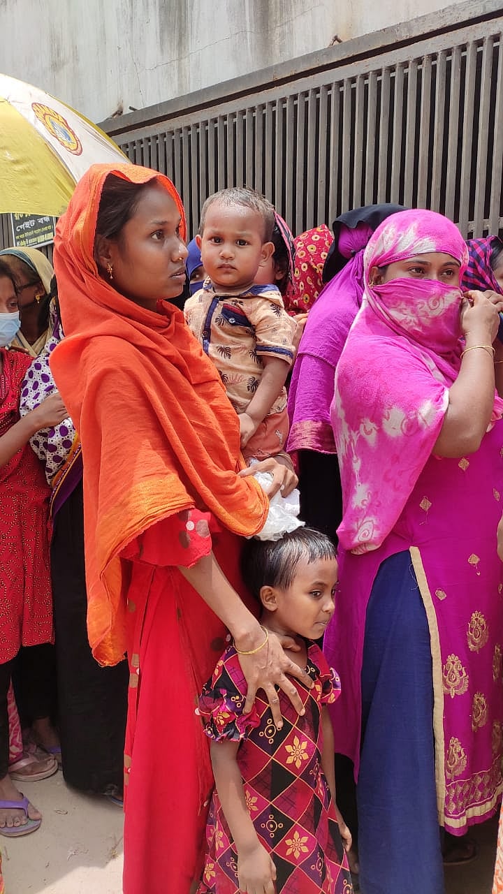 আড়াই ঘণ্টা রোদে পুড়ে লাইনে দাঁড়িয়ে ক্লান্ত মিতু প্রথম আলোকে বলেন, ‘প্রচুর রোদ। গরমে পোলাডা কান্নাকাটি করছে। ছোট মাইয়াডাও রোদে আর দাঁড়িয়ে থাকতে চাইছে না। তাগো জন্যই কয়েকবার লাইন ছাড়তে হইসে। ফিইরা আর আগের জায়গায় দাঁড়াইতে পারিনি।’