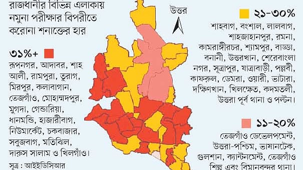 রাজধানীর ১৯ এলাকায় এখন সংক্রমণের হার ৩১ শতাংশের বেশি। কোন এলাকায় হার কত, তা প্রকাশ করেছে আইইডিসিআর।