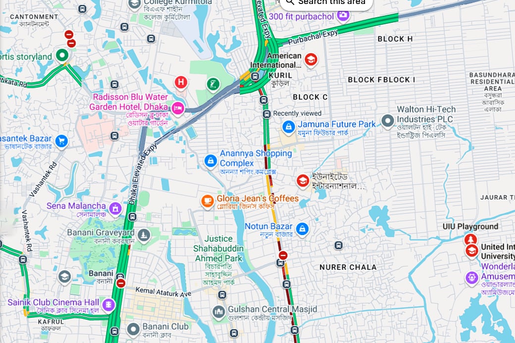 অবরোধের কারণে কুড়িল বিশ্বরোড থেকে বাড্ডামুখী সড়কে যান চলাচল বাধাগ্রস্ত হচ্ছে।