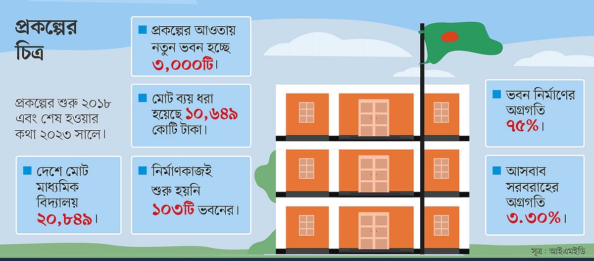 সরকারের বাস্তবায়ন পরিবীক্ষণ ও মূল্যায়ন বিভাগের (আইএমইডির) এক নিবিড় পরিবীক্ষণ প্রতিবেদনে বেসরকারি বিদ্যালয়ে ভবনসহ শিক্ষার আনুষঙ্গিক অবকাঠামো নির্মাণের এই প্রকল্পে নানা সমস্যার চিত্র উঠে এসেছে। সারা দেশে প্রায় প্রায় ২১ হাজার মাধ্যমিক বিদ্যালয় রয়েছে। এতে পড়াশোনা করেন এক কোটির বেশি শিক্ষার্থী। বিপুল এই শিক্ষার্থীর শ্রেণিকক্ষের সংকট রয়েছে। এই সংকট কাটাতে বাছাই করে তিন হাজার বেসরকারি মাধ্যমিক বিদ্যালয়ে নতুন ভবন নির্মাণ করছে সরকার। সরকারের অর্থায়নে ‘নির্বাচিত বেসরকারি মাধ্যমিক বিদ্যালয়সমূহের উন্নয়ন’ শীর্ষক প্রকল্পটি বাস্তবায়ন করছে শিক্ষা মন্ত্রণালয়ের অধীন শিক্ষা প্রকৌশল অধিদপ্তর (ইইডি)।