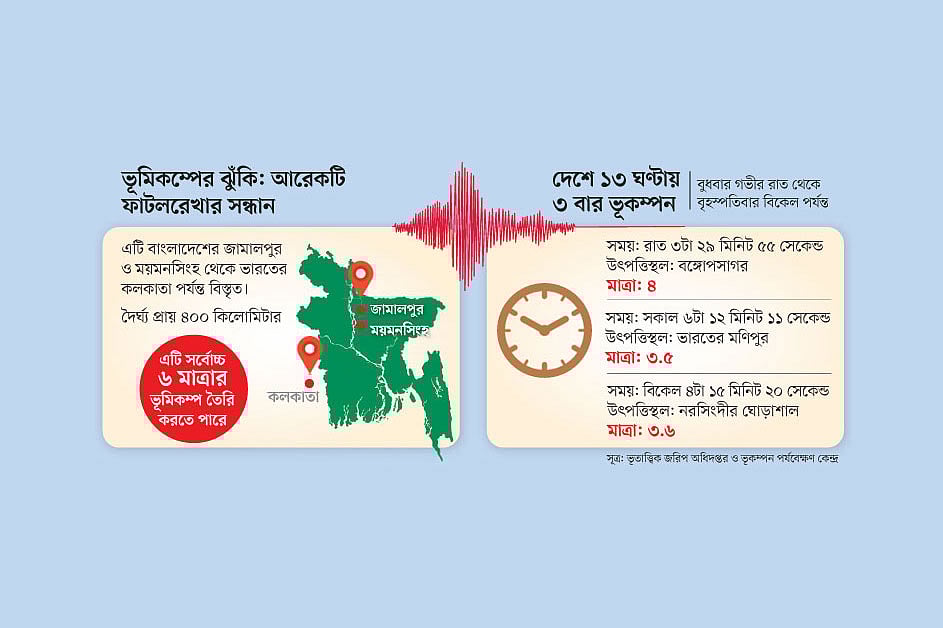 বাংলাদেশে আরেকটি সক্রিয় ভূগর্ভস্থ ফাটলরেখার (ফল্টলাইন) সন্ধান পেয়েছে ভূমিকম্প নিয়ে কাজ করা আন্তর্জাতিক গবেষকদের একটি দল। এটি বাংলাদেশের জামালপুর ও ময়মনসিংহ থেকে ভারতের কলকাতা পর্যন্ত বিস্তৃত। দৈর্ঘ্য প্রায় ৪০০ কিলোমিটার।