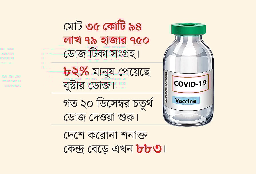 ২০২২ সাল শেষ হওয়ার আগেই করোনার টিকার চতুর্থ ডোজ বা দ্বিতীয় বুস্টার ডোজ দেওয়া শুরু করেছে স্বাস্থ্য বিভাগ। স্বাস্থ্য অধিদপ্তর জানায়, গত ২০ ডিসেম্বর থেকে এ পর্যন্ত ১ লাখ ৬০ হাজারের বেশি মানুষ দ্বিতীয় বুস্টার ডোজ পেয়েছেন। ২০২১ সালের ফেব্রুয়ারিতে করোনার টিকাদান কর্মসূচির শুরুতে মানুষের মধ্যে নানা সংশয় ও উদ্বেগ ছিল।