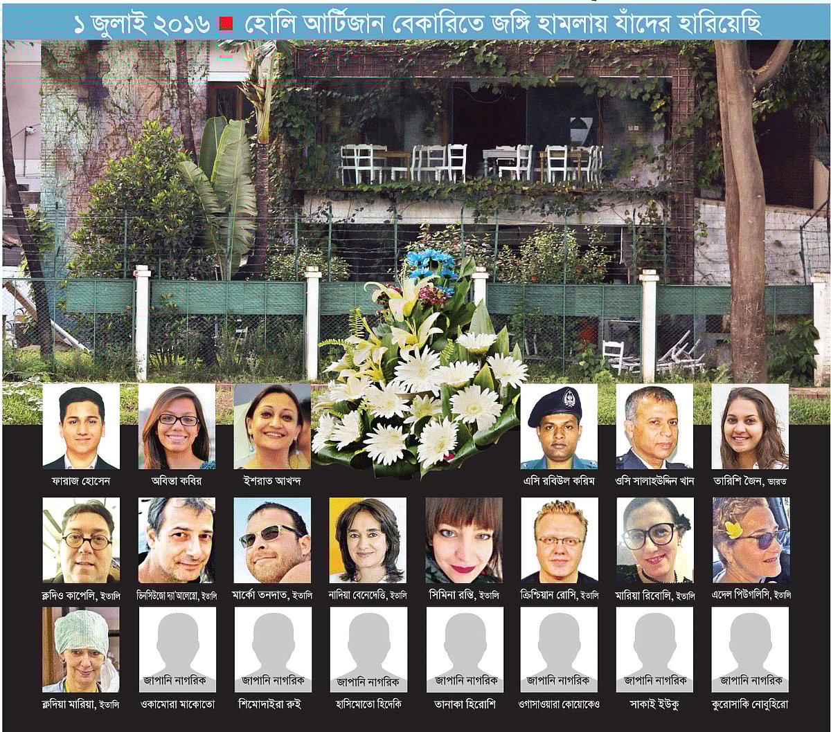 ঠিক এক বছর আগে, ঢাকার গুলশানে হোলি আর্টিজান বেকারিতে জঙ্গি হামলা, নৃশংস হত্যাযজ্ঞ, ১২ ঘণ্টার রুদ্ধশ্বাস জিম্মি সংকটের ঘটনা স্তম্ভিত করেছিল পুরো দেশকে। ভয়াবহ ওই হামলার জন্য জঙ্গিরা চার মাস ধরে প্রস্তুতি নিয়েছিল। যদিও হামলার লক্ষ্যবস্তু হিসেবে হোলি আর্টিজান বেকারিকে বেছে নেওয়া হয় হামলার দুই সপ্তাহ আগে। আর হামলাকারী দলটি তাদের লক্ষ্যস্থল সম্পর্কে জানতে পারে হামলার মাত্র তিন-চার দিন আগে।