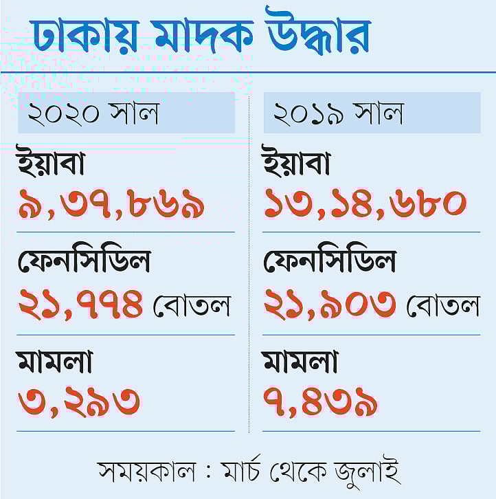 করোনার পাঁচ মাসে উদ্ধার হওয়া মাদক গত বছরের এই সময়ে উদ্ধার হওয়া মাদকের অর্ধেকের বেশি।