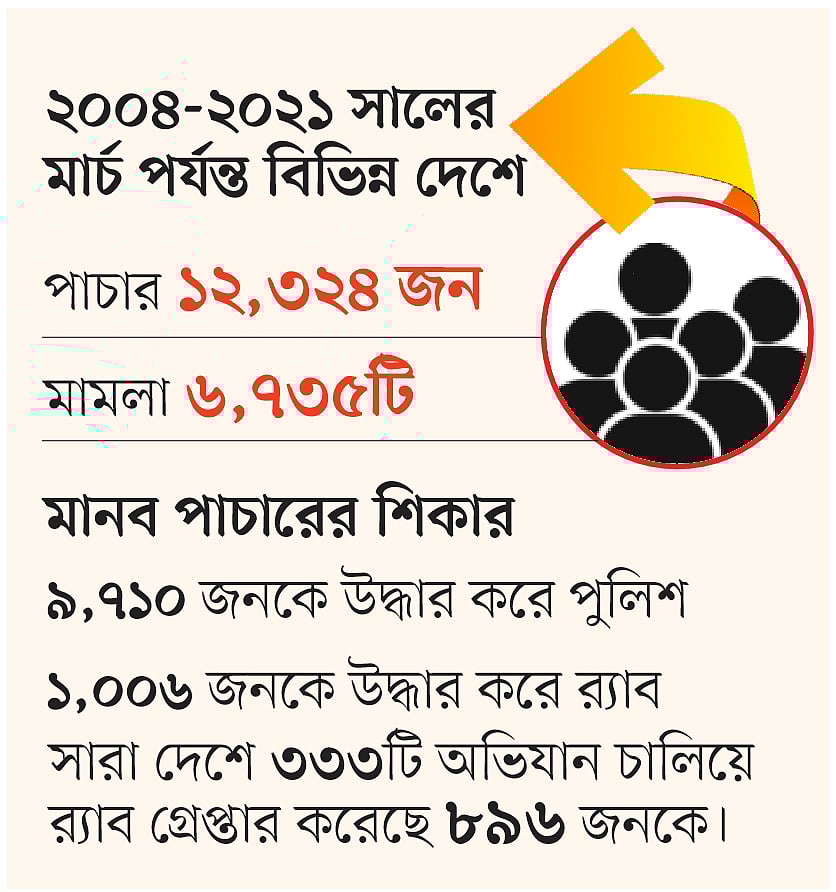 র্যাবের আইন ও গণমাধ্যম শাখার পরিচালক কমান্ডার খন্দকার আল মঈন প্রথম আলোকে বলেন, প্রবাসী কল্যাণ মন্ত্রণালয়ের মাধ্যমে তথ্য যাচাই–বাছাই না করে সহজ উপায়ে লিবিয়া ও ইউরোপ যেতে গিয়ে মানুষ প্রতারণার শিকার হচ্ছেন। তিনি বলেন, সারা দেশে মানব পাচারে সহস্রাধিক ব্যক্তি জড়িত।