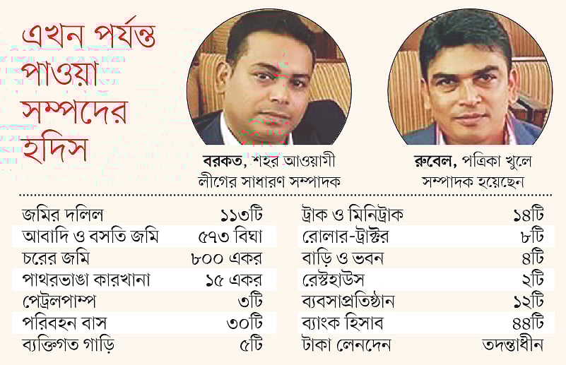 >চাঁদাবাজি, টেন্ডারবাজি, জমি দখল করে সম্পদের পাহাড় গড়েছেন রুবেল–বরকত। সাবেক মন্ত্রীর প্রশ্রয়ে বেড়ে ওঠার অভিযোগ।